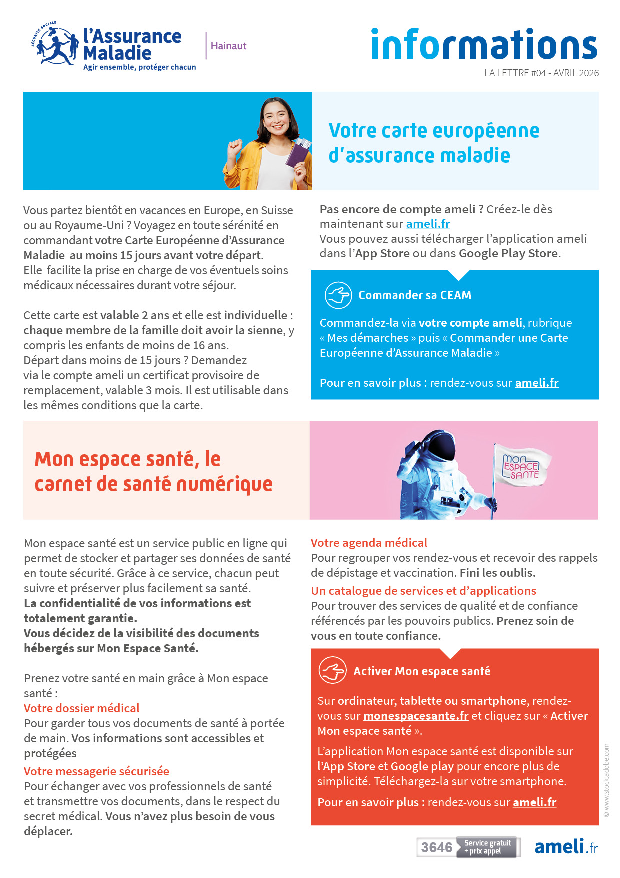 Si vous souhaitez créer et apprendre à gérer votre compte sécu sur internet, sur le site dédié AMELI.FR, vous pouvez contacter l’Espace Numérique A.Douay pour suivre les ateliers correspondants, au ☏ 03 27 44 99 08.